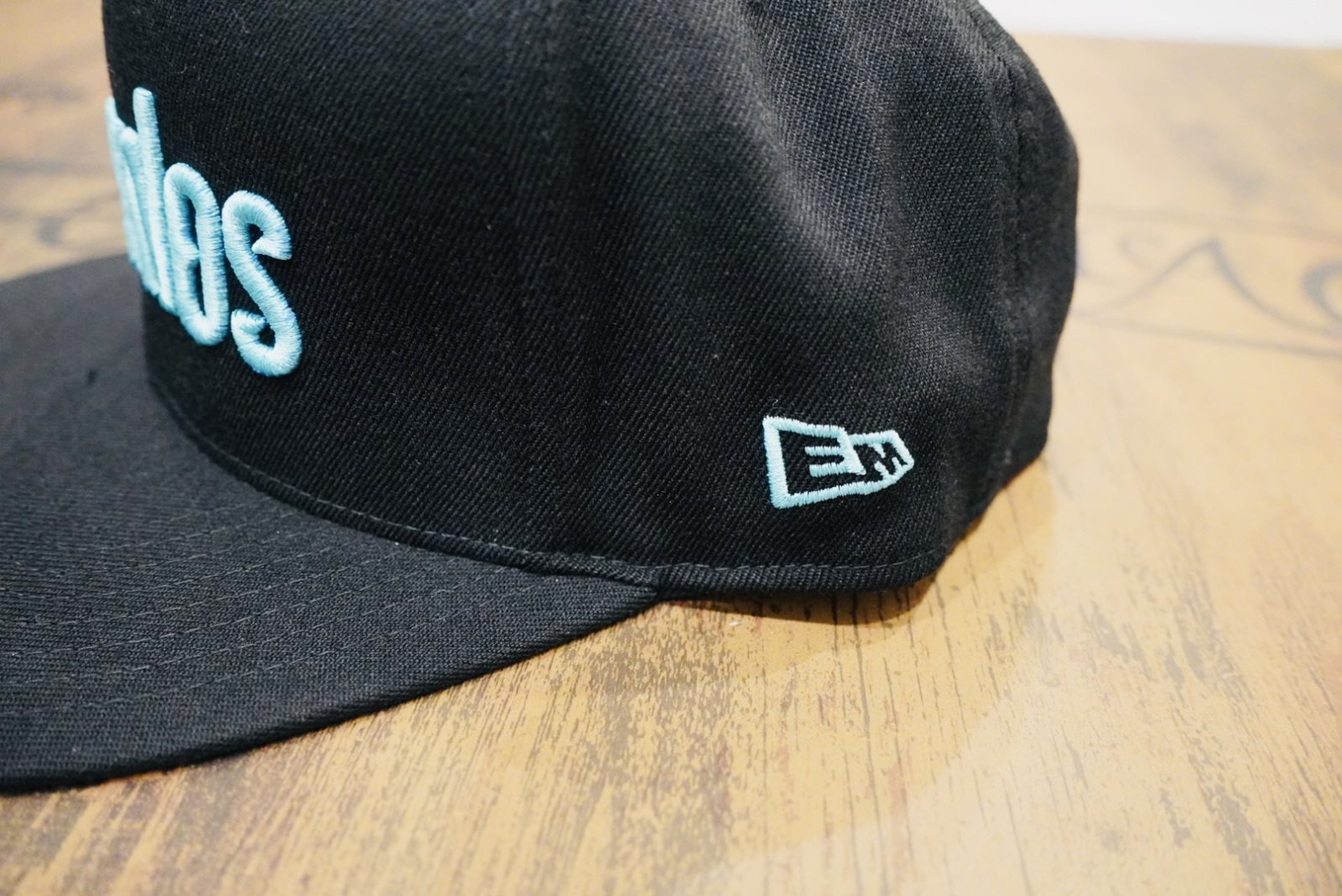 フラットバイザー、スナップバック留め。