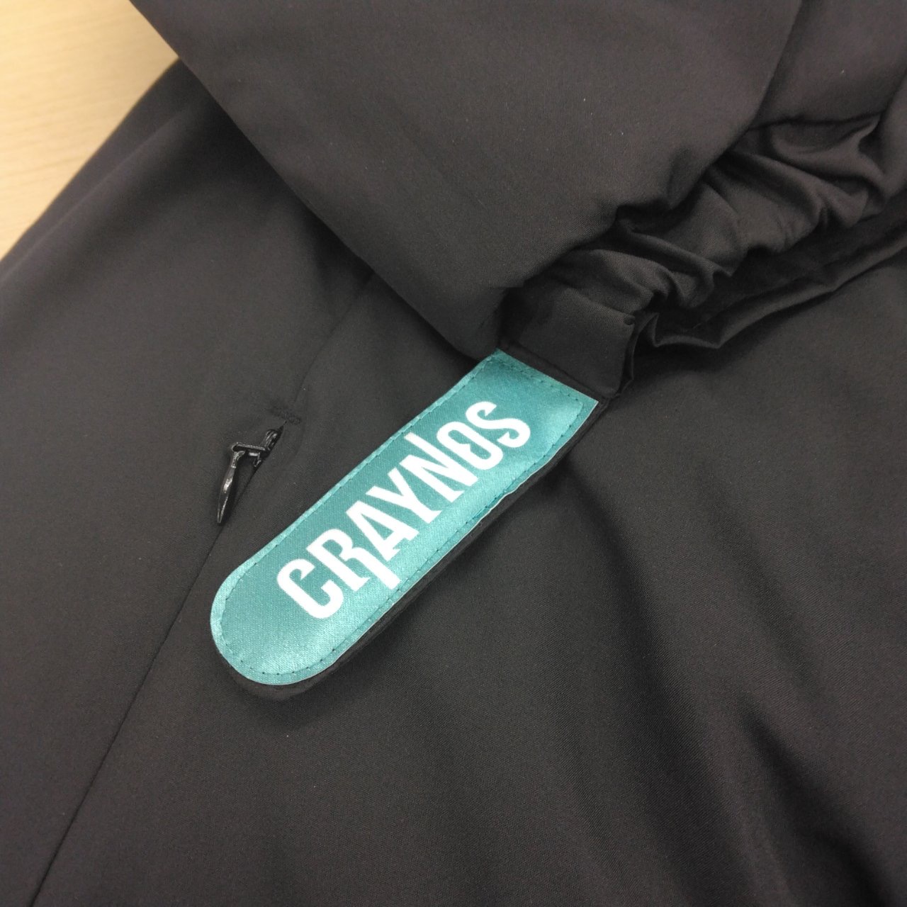 『左胸にトライデントクラウン・後にCRAYNOSロゴ・両袖にワガママターコイズ加工』