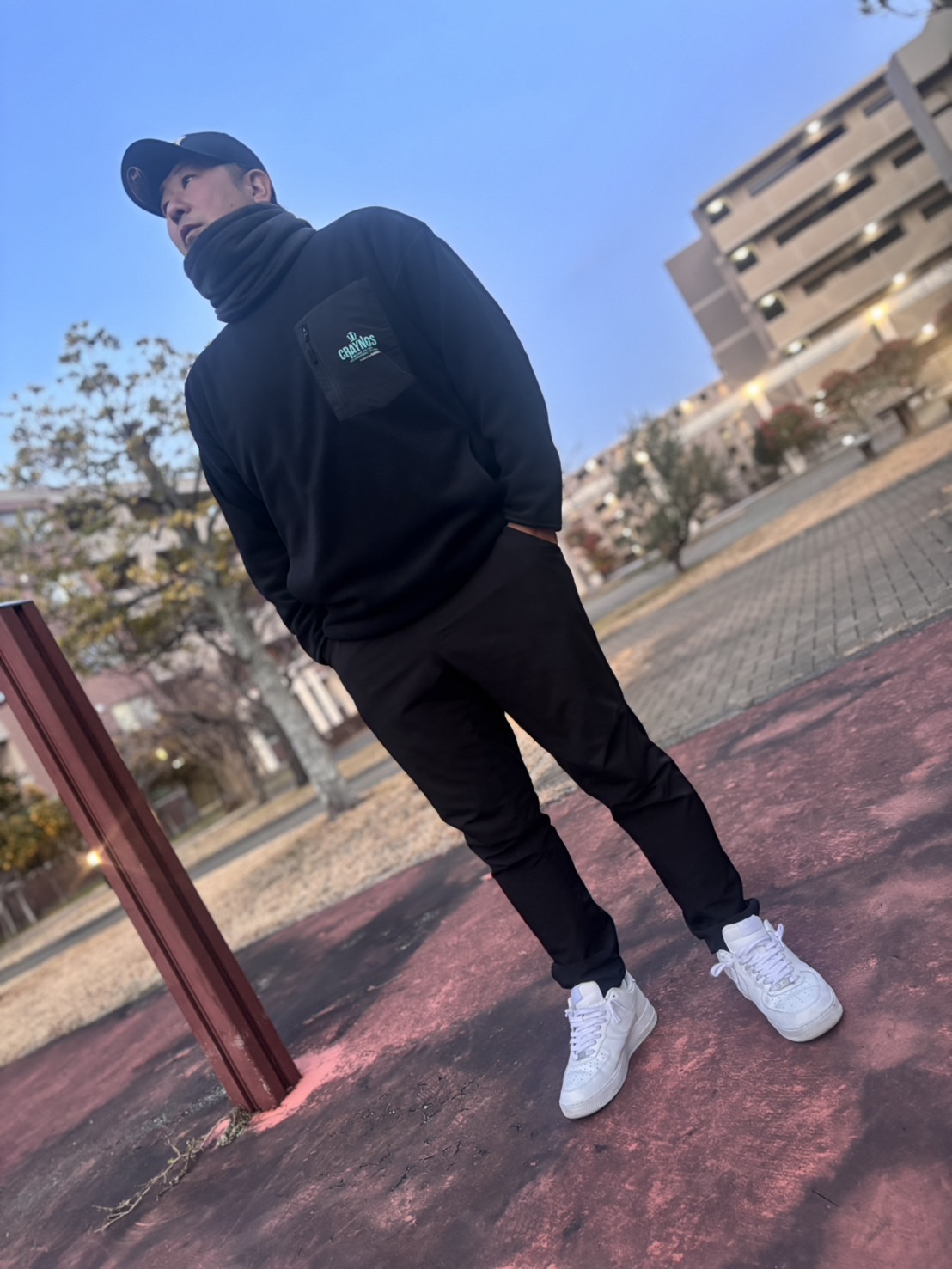 主張が強いロゴをCOOLなデザイン配置にする事により、移動中や、買い物にも着ていけるように細部まで拘ったアパレルを作成しました。